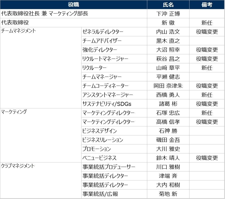 この度、2023-24シーズンのチーム体制につきまして、以下の通りお知らせいたします。
