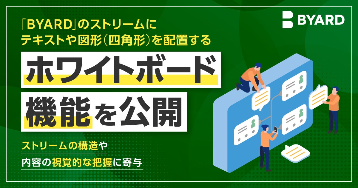 株式会社BYARD(本社:東京都港区、代表取締役CEO:武内 俊介)が運営する「BYARD(バイアード)」は、ストリームの上にテキストや図形(四角形)を配置し視覚的に構造や内容把握を助ける「ホワイトボード」機能を公開しました。