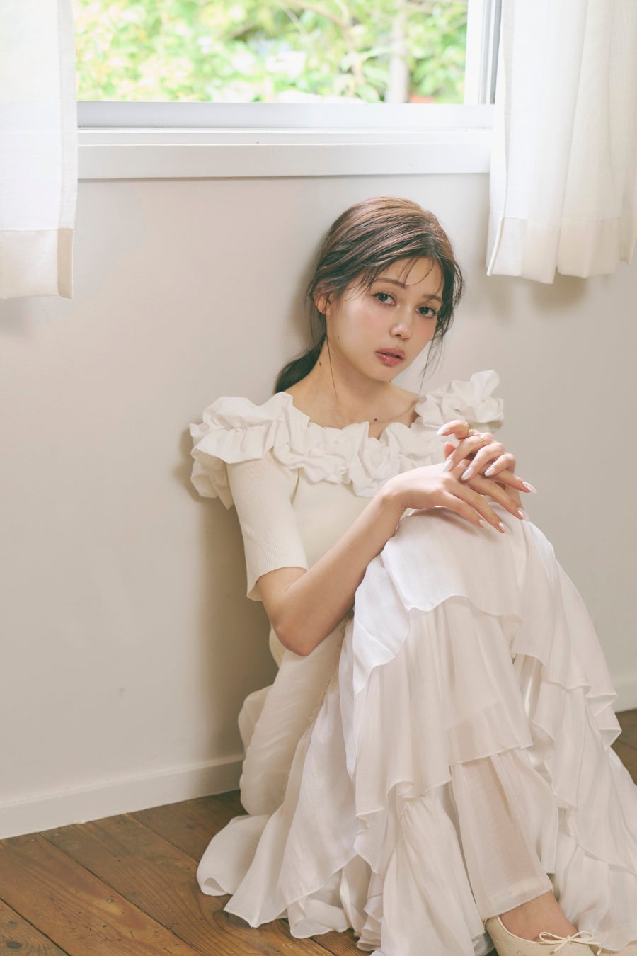 スタジオ撮影では、自然光が差し込むやわらかな空間の中、