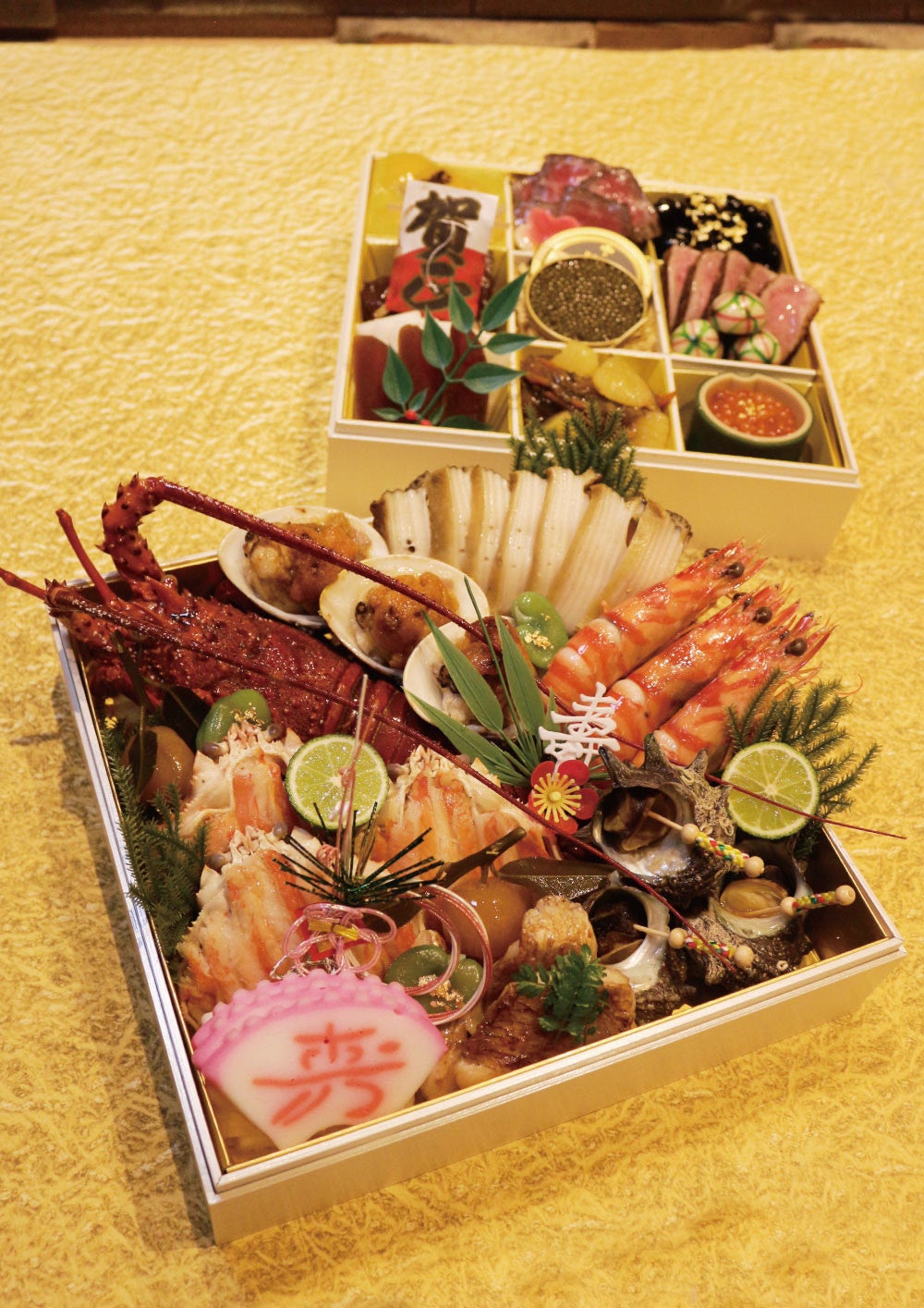 「銀座おのでら」各店の、渾身の思いを詰め込んだ至極のおせちが誕生いたしました。魔除け伊勢海老丸ごと1尾、邪気を払うふっくら柔らかく仕上げた黒豆、内子・外子たっぷりな香箱蟹、柔らかく蒸しあげた国産蒸し鮑、薪焼のスモークが薫る黒毛和牛ローストビーフや京鴨ロースなど、「銀座おのでら」の徹底したこだわりが結集した、唯一無二の決定版です。