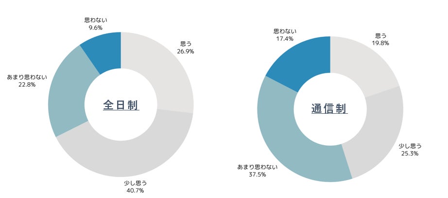 「自分は誰かの役に立っていると思いますか?」という質問に対し、全日制高校では「思わない・あまり思わない」の合計が32.4%であったのに対し、通信制高校では54.9%と半数以上を占める結果となりました。
