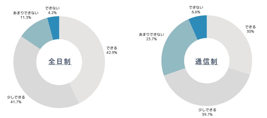「自分が何かしたいと思った時に行動できますか?」という質問に対し、全日制高校では「できない・あまりできない」と回答したのが15.5%であったのに対し、通信制高校では30.3%と、こちらも全日制に通う生徒よりも多い結果となりました。