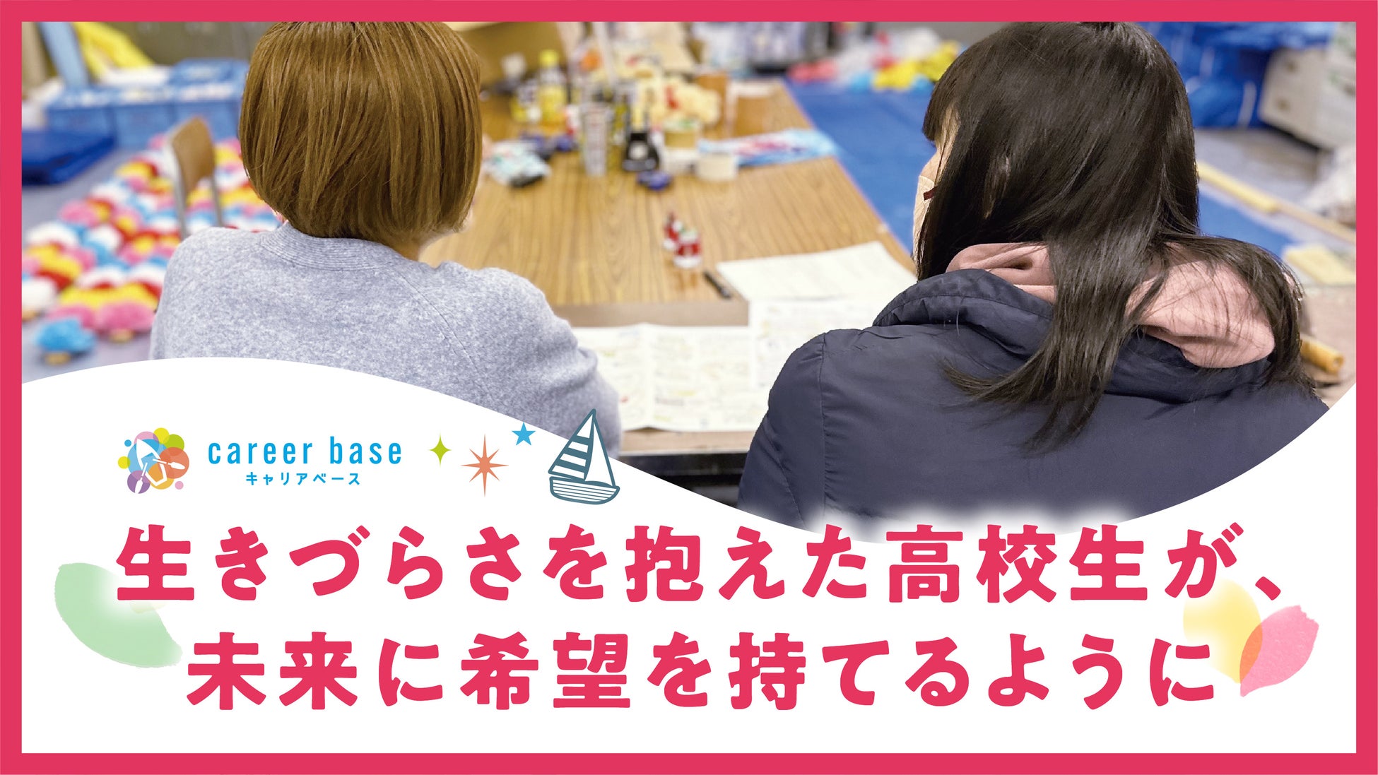 NPO法人キャリアbaseは、通信制高校に通う高校生を中心に、社会的自立をサポートする活動として「個別就労支援・居場所・キャリア教育」を行うNPO団体です。