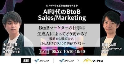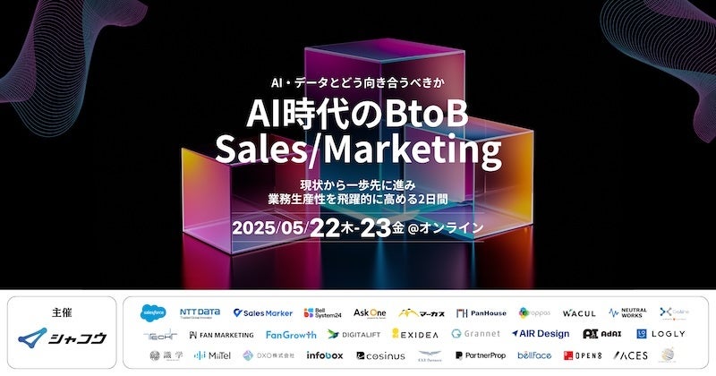 株式会社 シャコウ(本社:所在地:東京都渋谷区、代表取締役:太田翔葵)は、BtoB企業32社が登壇する「AI・データとどう向き合うか?」というコンセプトで、『AI時代のBtoB Sales/Marketing 現状から一歩先に進み、業務生産性を飛躍的に高める2日間』の開催が決定したことをお知らせします。