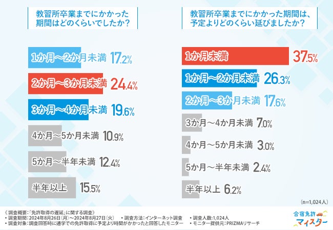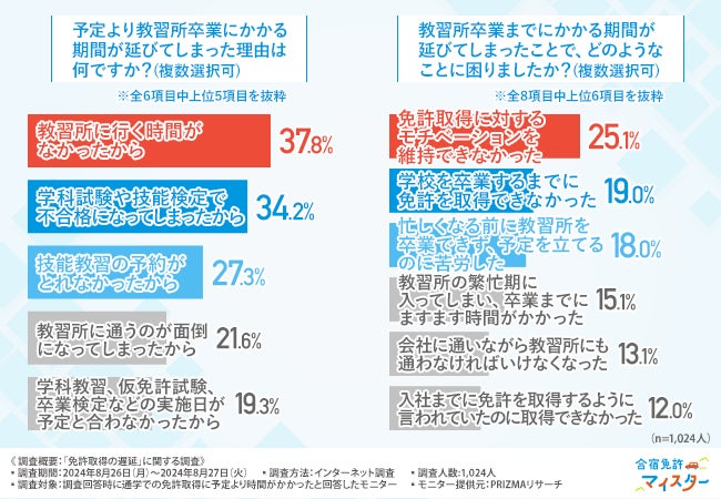 株式会社サクラス(所在地:東京都中央区、代表取締役:山本 謙介)は、通学での免許取得に予定より時間がかかった方を対象に「免許取得の遅延」に関する調査を実施しました。