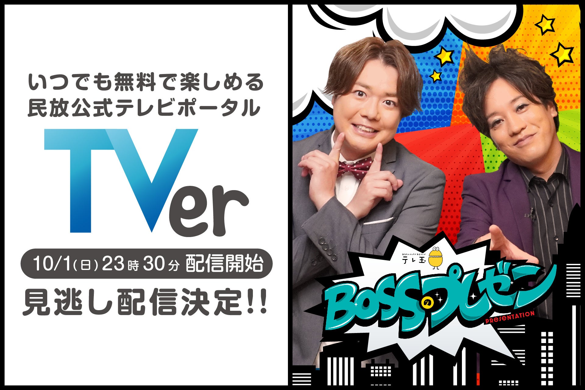 この度、弊社が企画・制作した初のTV番組『BOSSのプレゼン』が、2023年10月1日(日)の23時30分より、TVerにて無料配信が開始いたしました。