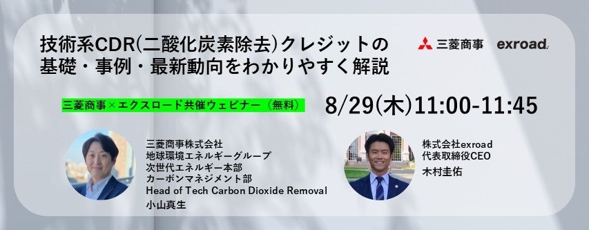 技術系CDR(二酸化炭素除去)クレジットの最新動向をわかりやすく解説:三菱商事×エクスロード共催ウェビナー【8/29(木)11:00-】