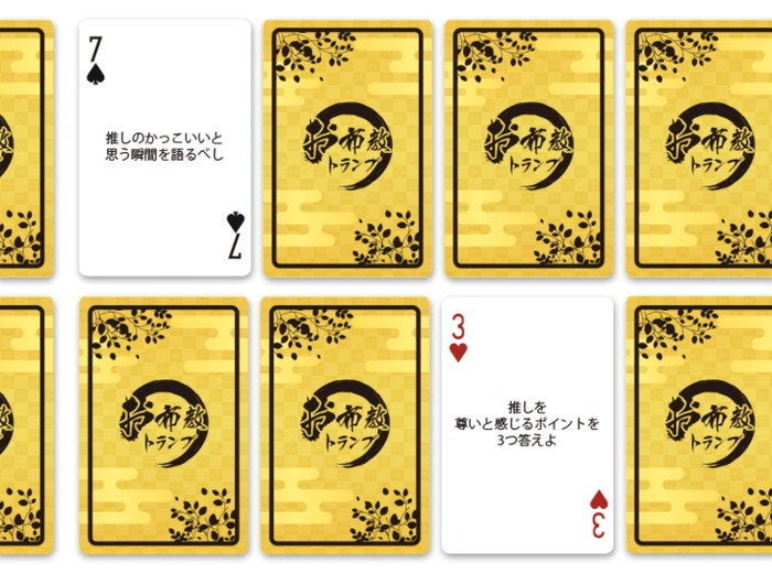 お布教トランプで互いの推しを布教し合い、友達やパートナーを沼の入り口まで誘い込みましょう。