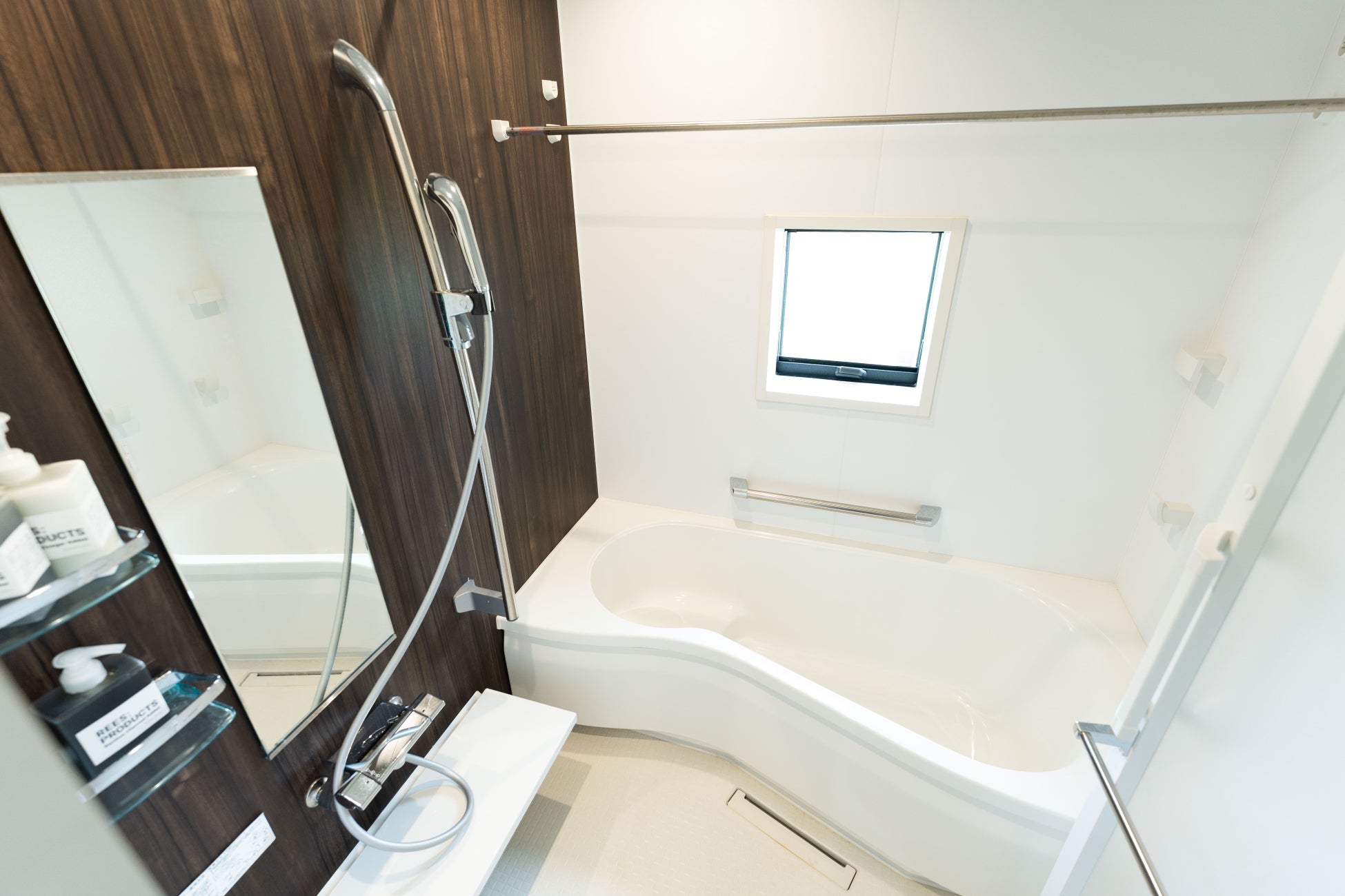 バスルームには、洗い場付きのバスタブとスタイリッシュな独立洗面台を備え、ゆったりとした時間をお過ごしいただけます。
