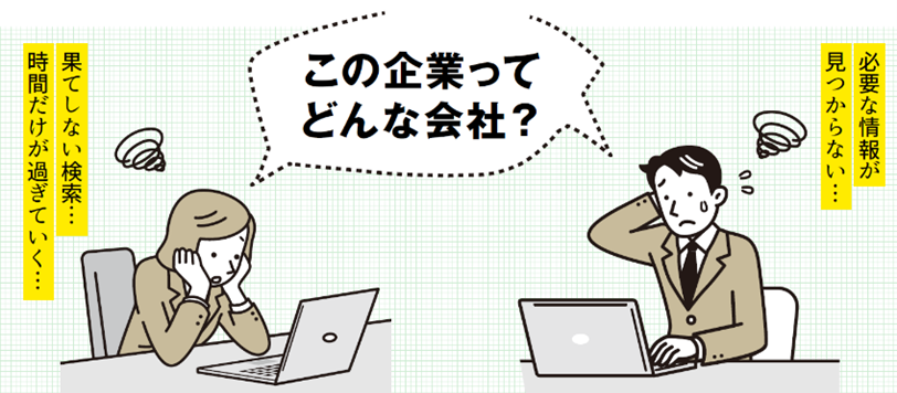 ①営業の折衝先企業の把握:大事なお客様の訪問前に、会社概要、最近の動きを把握