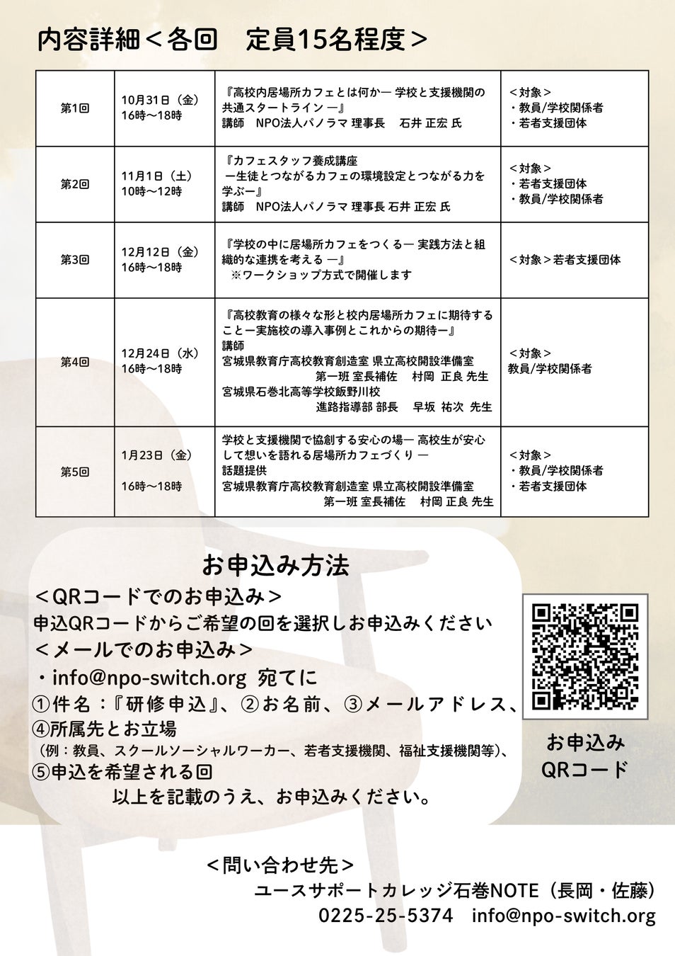 高校内居場所カフェ研修(全5回)開催のお知らせ