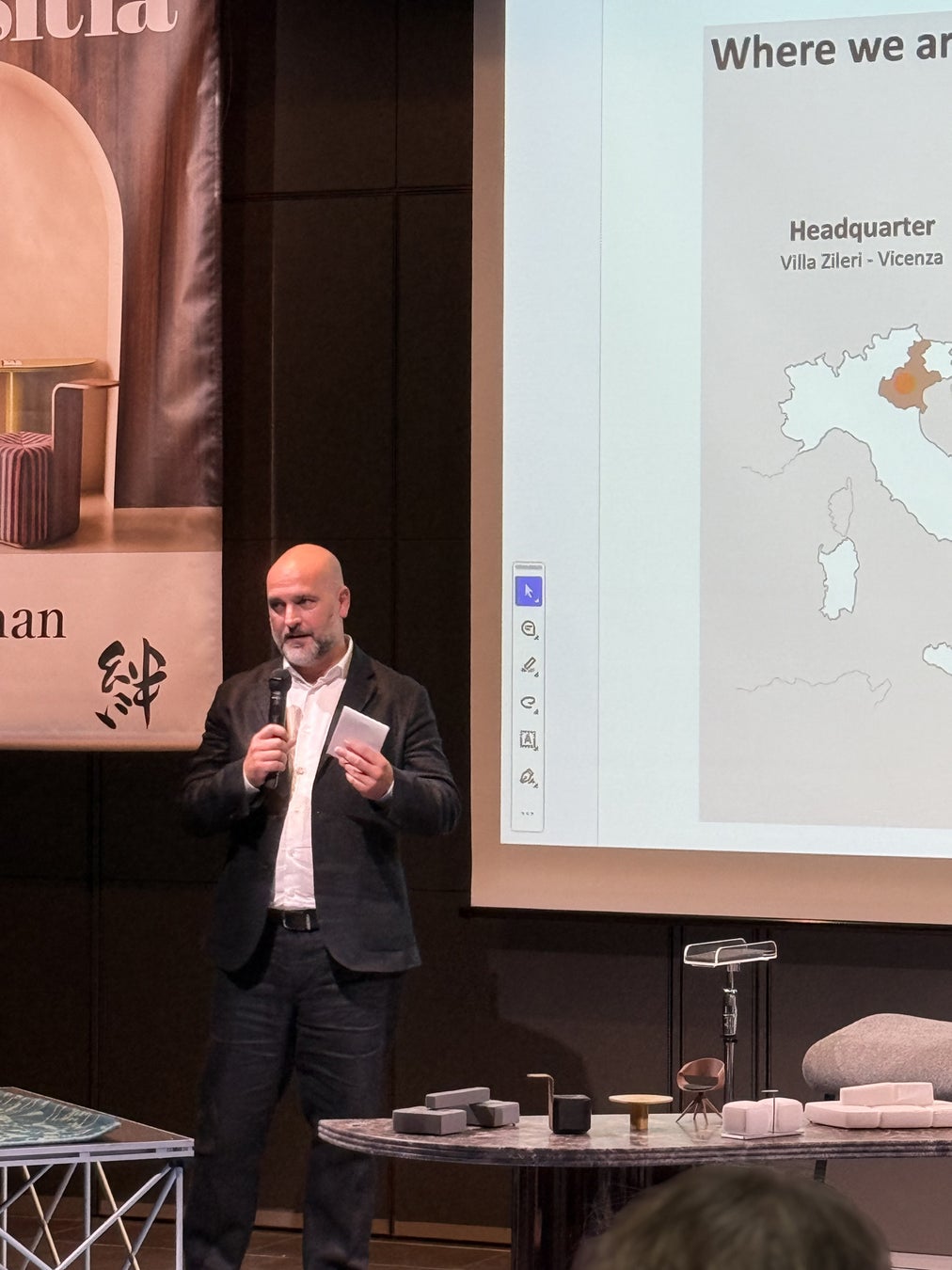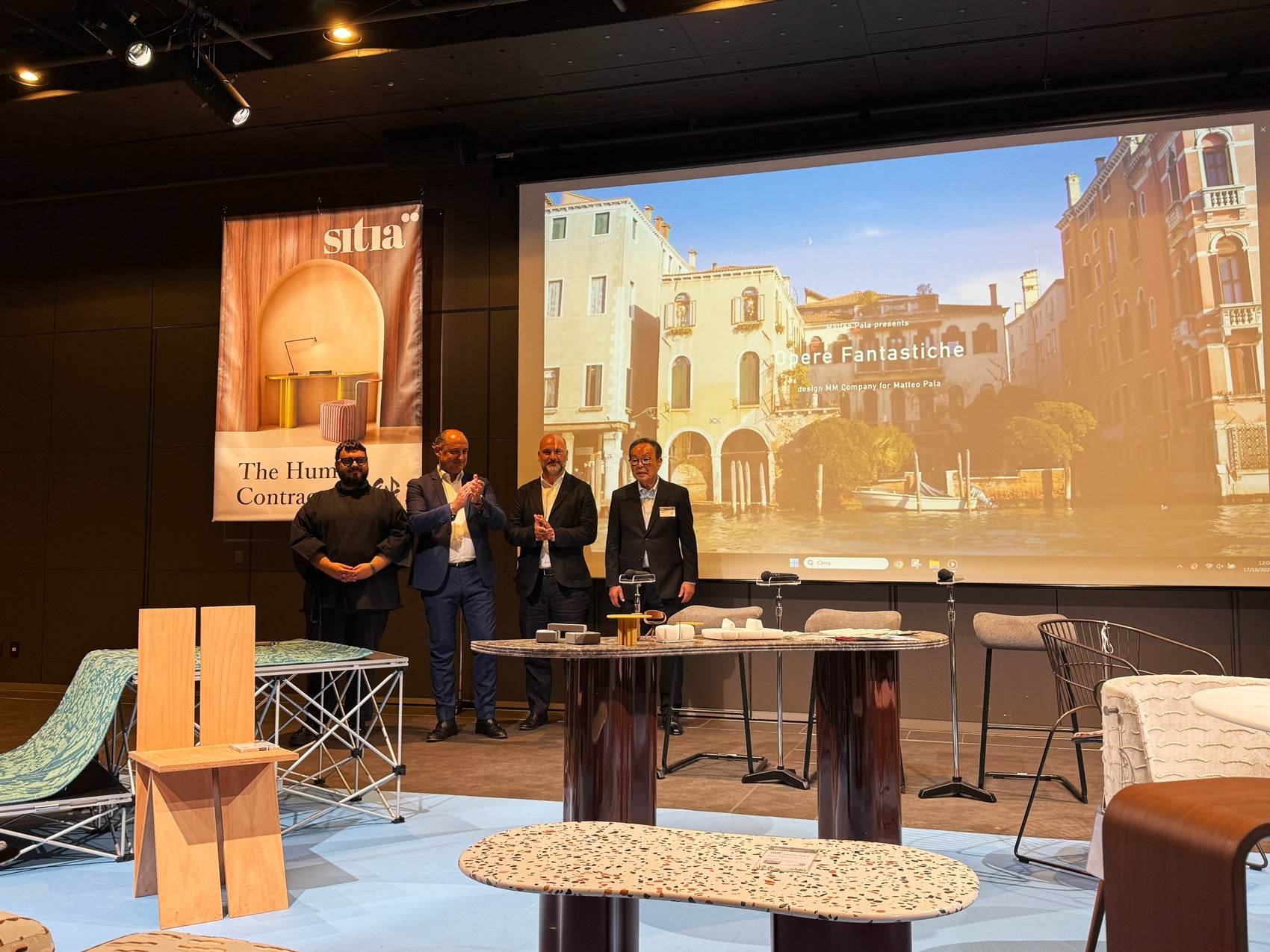 2025年10月17日金曜日、暑かった東京にようやくやってきた心地よい秋の日差しの中、イタリアのプレミアムブランドSitia(シティア)とラグブランドMatteo Pala(マッテオ・パラ)による"DESIGN TOMORROW workshop"が晴れて開催されました。在日イタリア商工会議所の後援を受け、インテリアデザイナー、建築家、大手デベロッパーの方々、約70名がP.O.南青山ホールに集われ、温かく人間味の溢れるコミュニケーションの場を創り出すことが出来たこと、心より御礼を申し上げます。当日のセミナーの様子を簡単ながらご報告させていただきます。