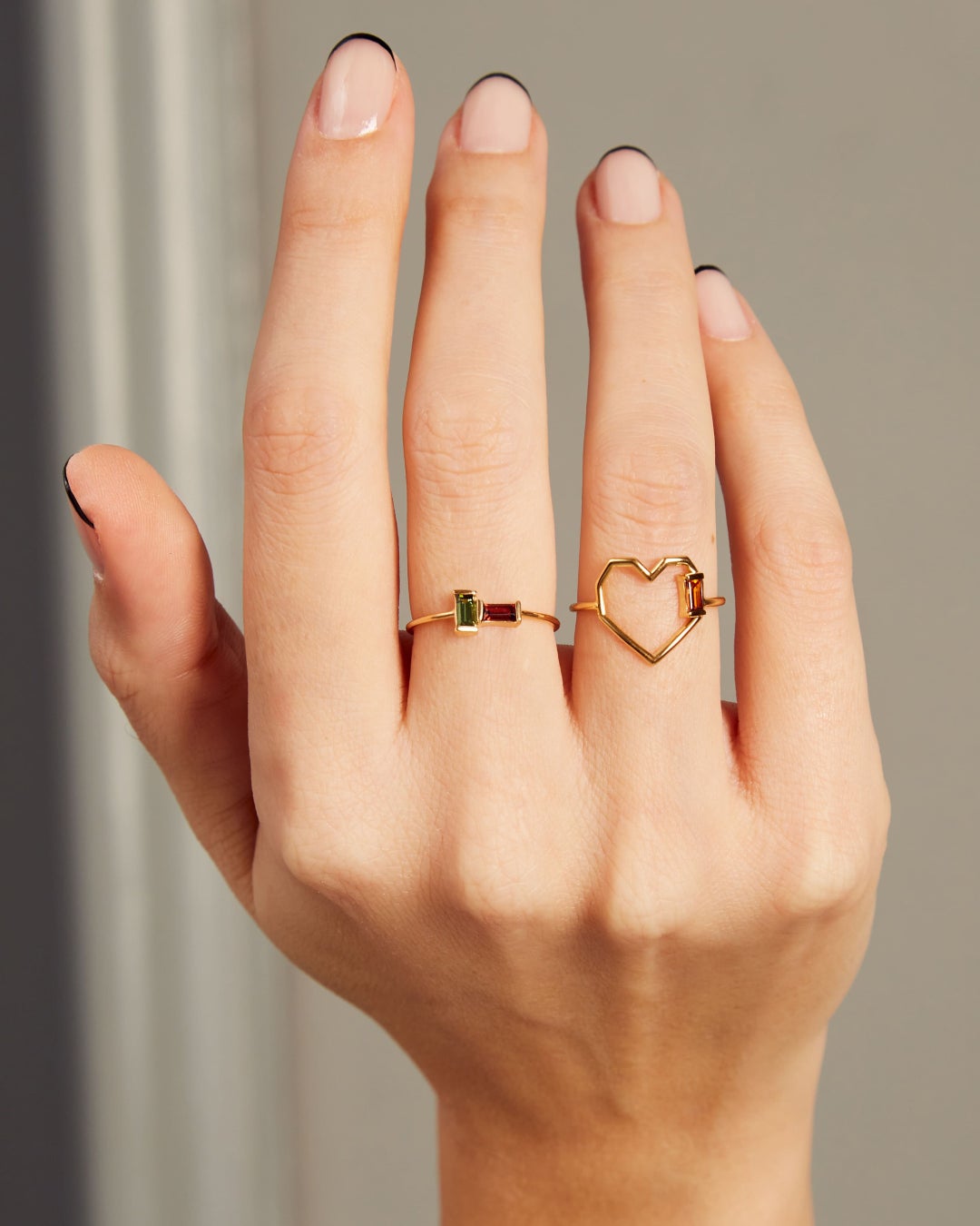 アクアマリンのバゲットカットを施したCORAZON BAGUETTEは、海のように深く穏やかな愛情を表現します。アクアマリンは、平和と静けさを象徴し持ち主に冷静さと勇気をもたらします。一方、シトリンのバゲットカットを施したCORAZON BAGUETTEは、太陽の輝きを宿したような明るさと成功を求める心を映し出します。