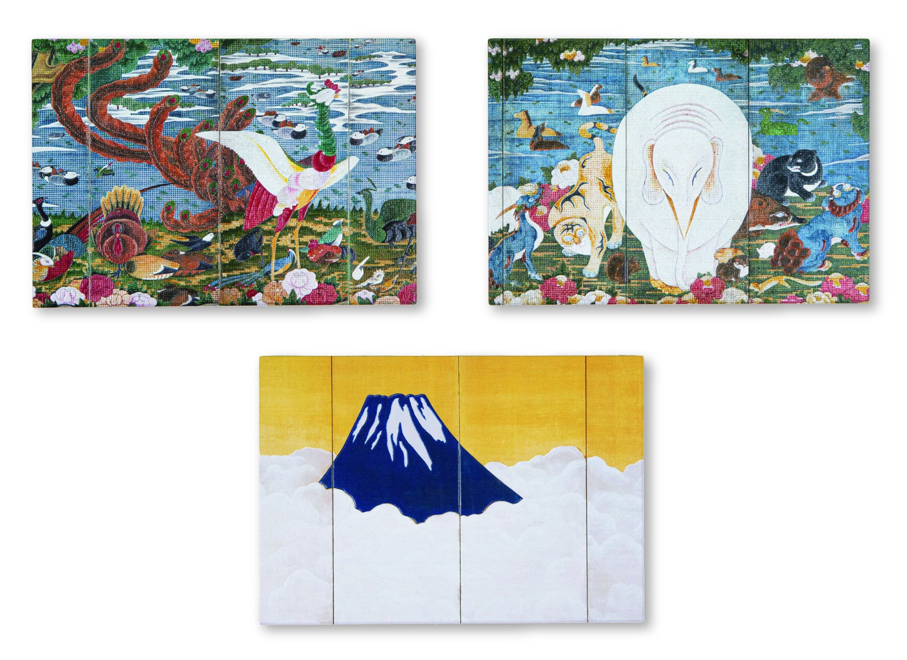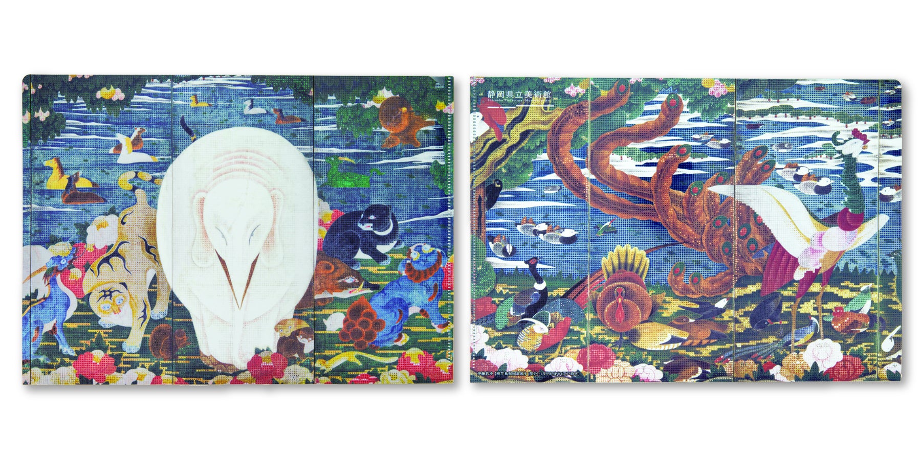 現在、同描法で描かれた若冲の作品は、出光美術館の《鳥獣花木図屏風》、個人蔵の《白象群獣図》と、静岡県立美術館の《樹花鳥獣図屏風》の3点しか残されておらず、その希少性から展示の機会を多くのファンが待ち侘びています。