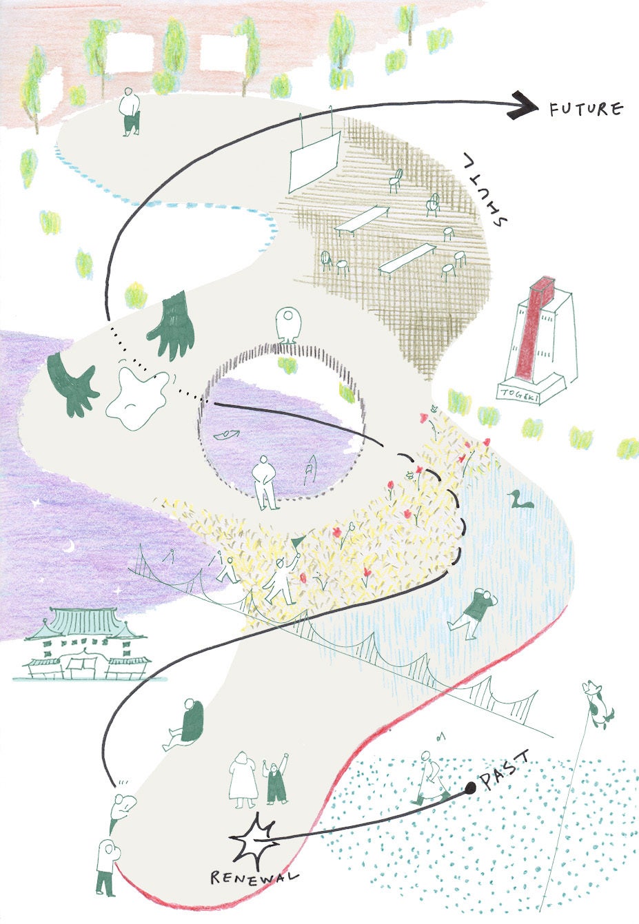 SHUTLのコンセプト<伝統と現代の新たな接続方法を生み出す実験場(ラボ)として、「未来のオーセンティック」を生み出す>を体現するスペースとしての歩みを前に進めるべく、SHUTLの空間に新たなデザインを加えます。メタボリズム(新陳代謝)の文脈を引き継ぎながら、気鋭建築家の柔軟で大胆な発想による新たな仕組みを加え、空間をアップデートします。
