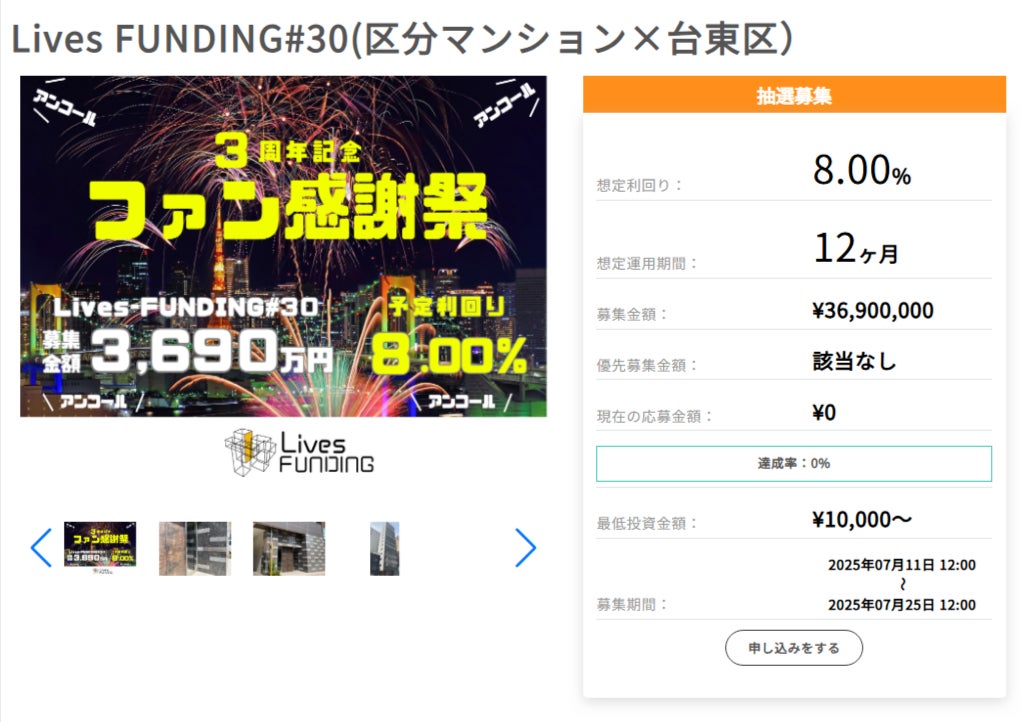 Lives-FUNDING最高水準の利回りでお届けする「ファン感謝祭」をぜひお楽しみください!