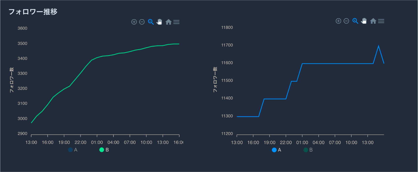 時間別フォロワー推移データの取得(フォロー対象に設定したアカウント)