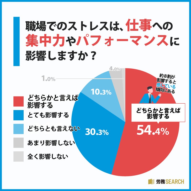 ここまでの調査結果から、ほとんどの方は職場でストレスを感じていると言えそうですが、ではそのストレスは、仕事のパフォーマンスなどに影響を与えているのでしょうか。