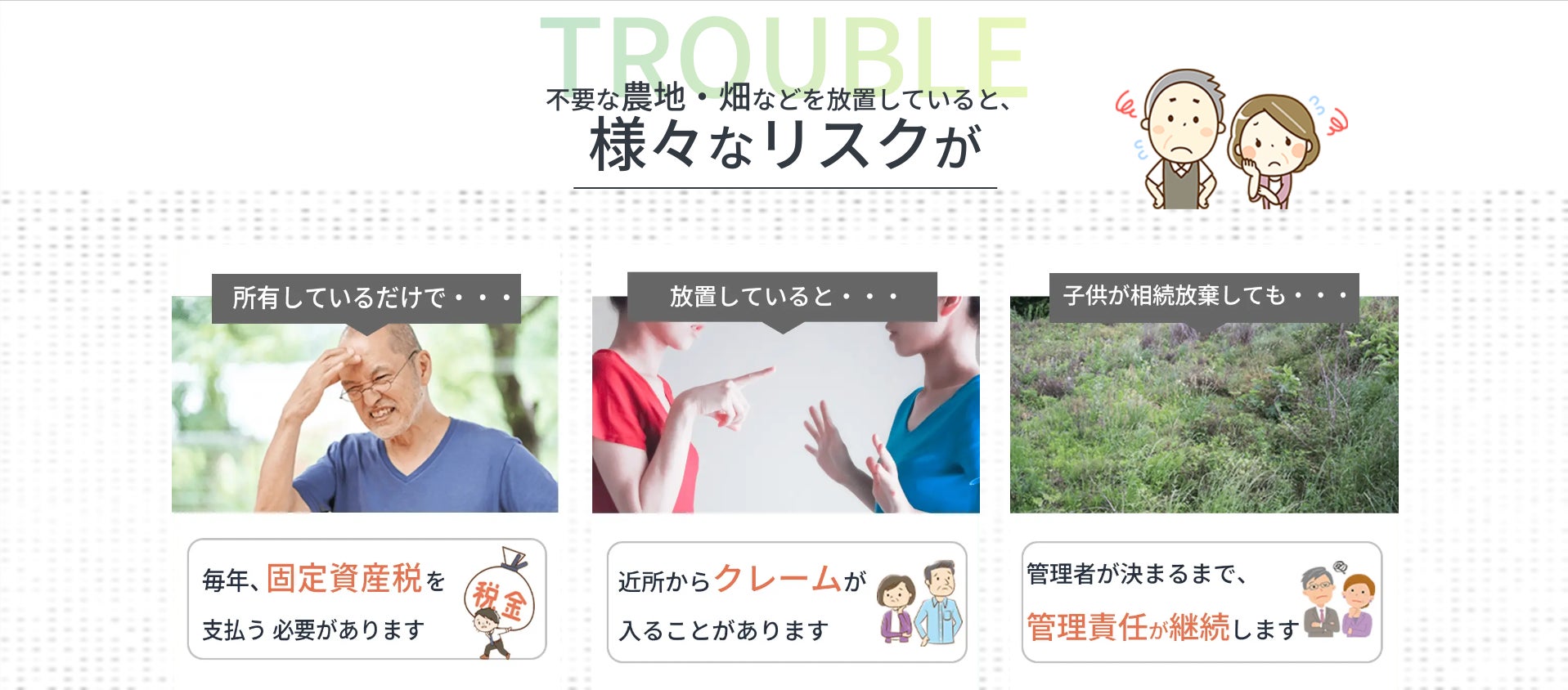 「母が所有していた畑を売却する必要性を感じていましたが、適切な売却先を見つけることが非常に困難でした。幸いにも、知り合いを通じて御社をご紹介していただき、数週間で譲渡を決めることができました。私達の不安を解消してもらい感謝しています。」