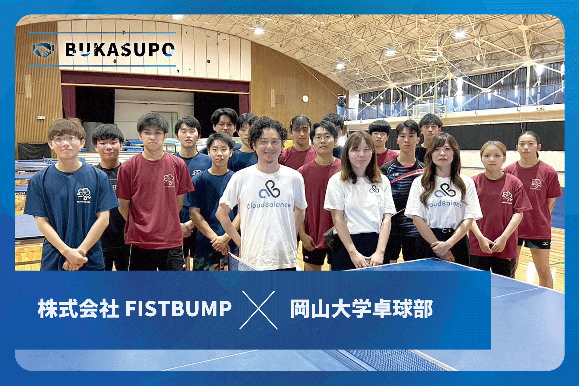 大学部活動のスポンサーマッチングサイト『BUKASUPO(以下、ブカスポ)https://bukasupo.com』を運営する株式会社部活メディア(本社:東京都千代田区)は、この度、弊社を通じて岡山大学卓球部と株式会社FISTBUMP(本社:岡山県岡山市)との間でスポンサー契約が締結されました。
