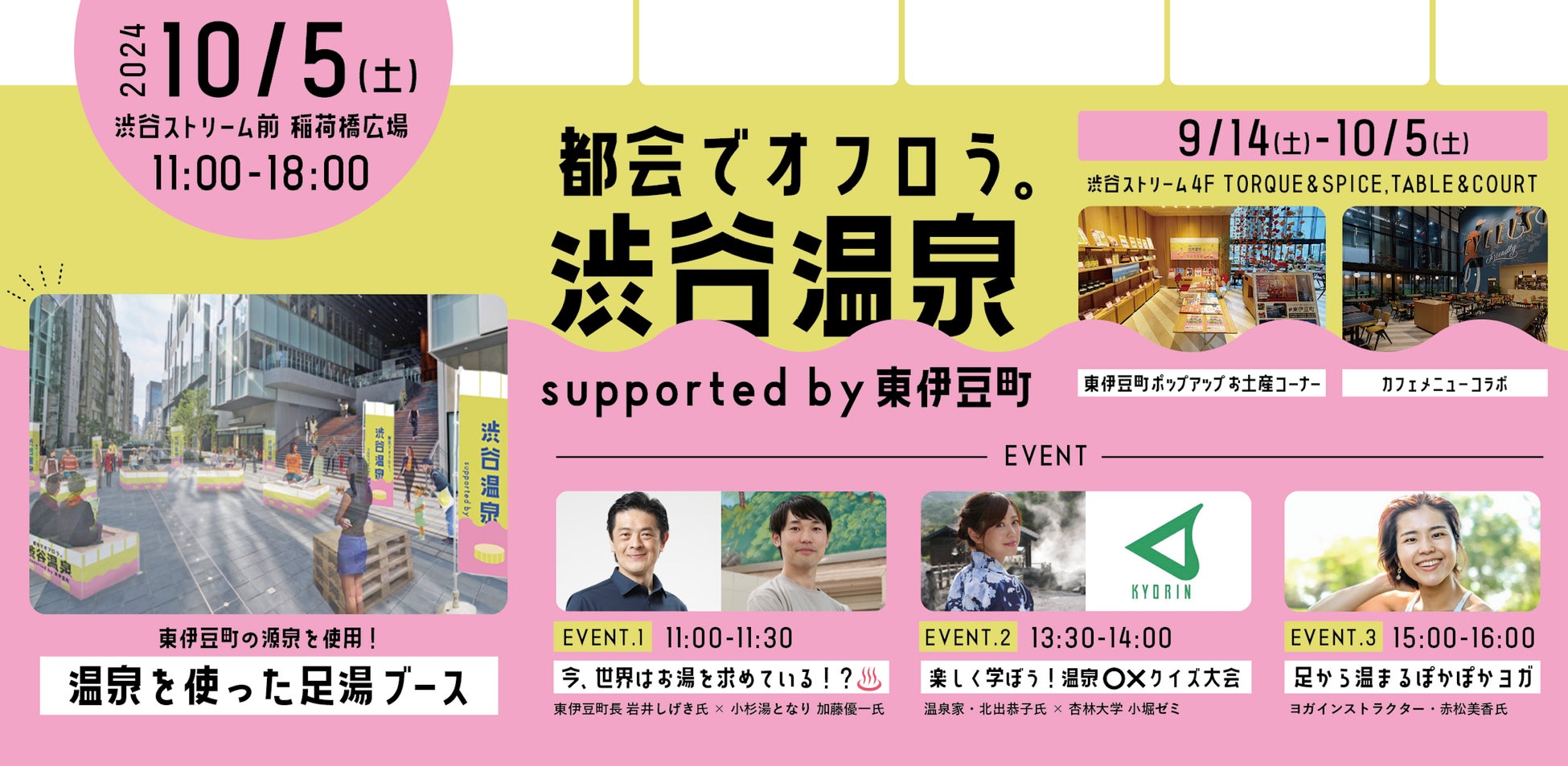 2024年9月14日(土)~10月5日(土)渋谷ストリームにてポップアップを開催。最終日には、東伊豆町の源泉を使った一日限りの足湯温泉パークが出現。