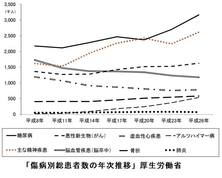 DALY(障害調整生命年)という疾病負荷を示す指標をご存知でしょうか。各種疾患による生命の損失や障害の総体を、単に死亡件数や患者発生件数あるいは生命の短縮としてのみでなく、それ以外の苦痛・障害など健康的な生活の損失も考慮に入れて定量化したもので、疾病が社会に与える損失を見ることができます。