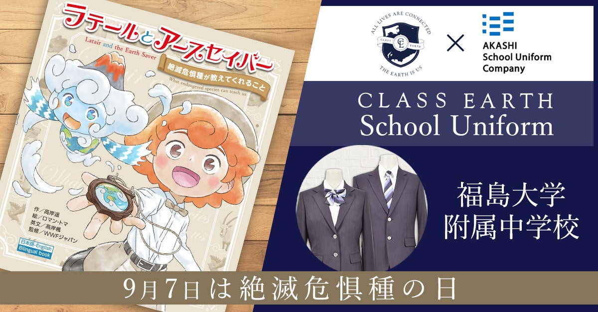 また、150年以上の歴史を誇る制服メーカー、株式会社明石スクールユニフォームカンパニー(本社:岡山県倉敷市 代表:河合 秀文)との協働による、洗濯時のマイクロプラスチック流出を防ぐ糸から出来た素材など、環境負荷軽減素材を活用した『CLASS EARTHの学校制服』の第一弾として、福島大学附属中学校が決定したことをお知らせいたします。