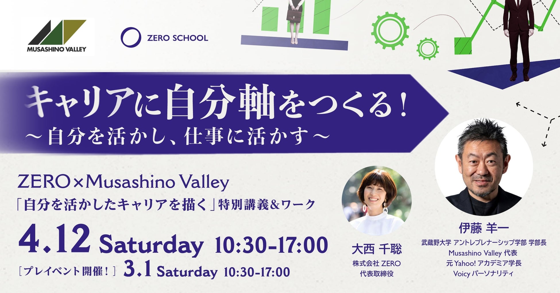 新年度を迎える今、「もっと成長したい」「自分の強みを活かしたい」と考える方。また、企業の経営者や人事の皆さまも「組織をより強くしたい」「メンバーが力を発揮できる環境を整えたい」とお考えではないでしょうか? そんな皆さまに向けて、株式会社ZEROは武蔵野大学アントレプレナーシップ学部学部長であり、Musashino Valley代表の伊藤羊一とともに、「キャリアオーナーシップ」をテーマに、個人と組織の成長を加速させる実践的な学びをお届けします。