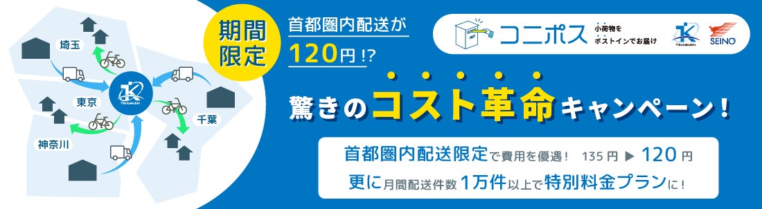 「首都圏内配送が120円!?期間限定・驚きのコスト革命キャンペーン!」