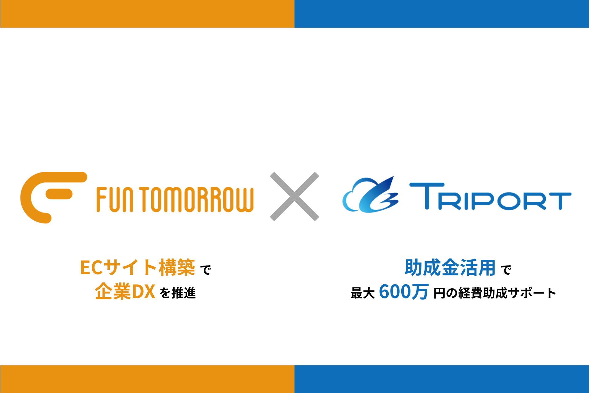 TRIPORT社会保険労務士法人(代表社員:岡本 秀興、以下 TRIPORT)は、株式会社FUN TOMORROW(代表取締役:廣 勇貴、以下 FUN TOMORROW)と連携し、中小企業向けに助成金制度を活用したECサイト構築支援を開始しました。