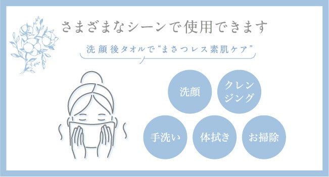 使い捨てタイプだからこそ、常に清潔な洗顔タオルを使用することができ、大切な肌を雑菌から守ります。