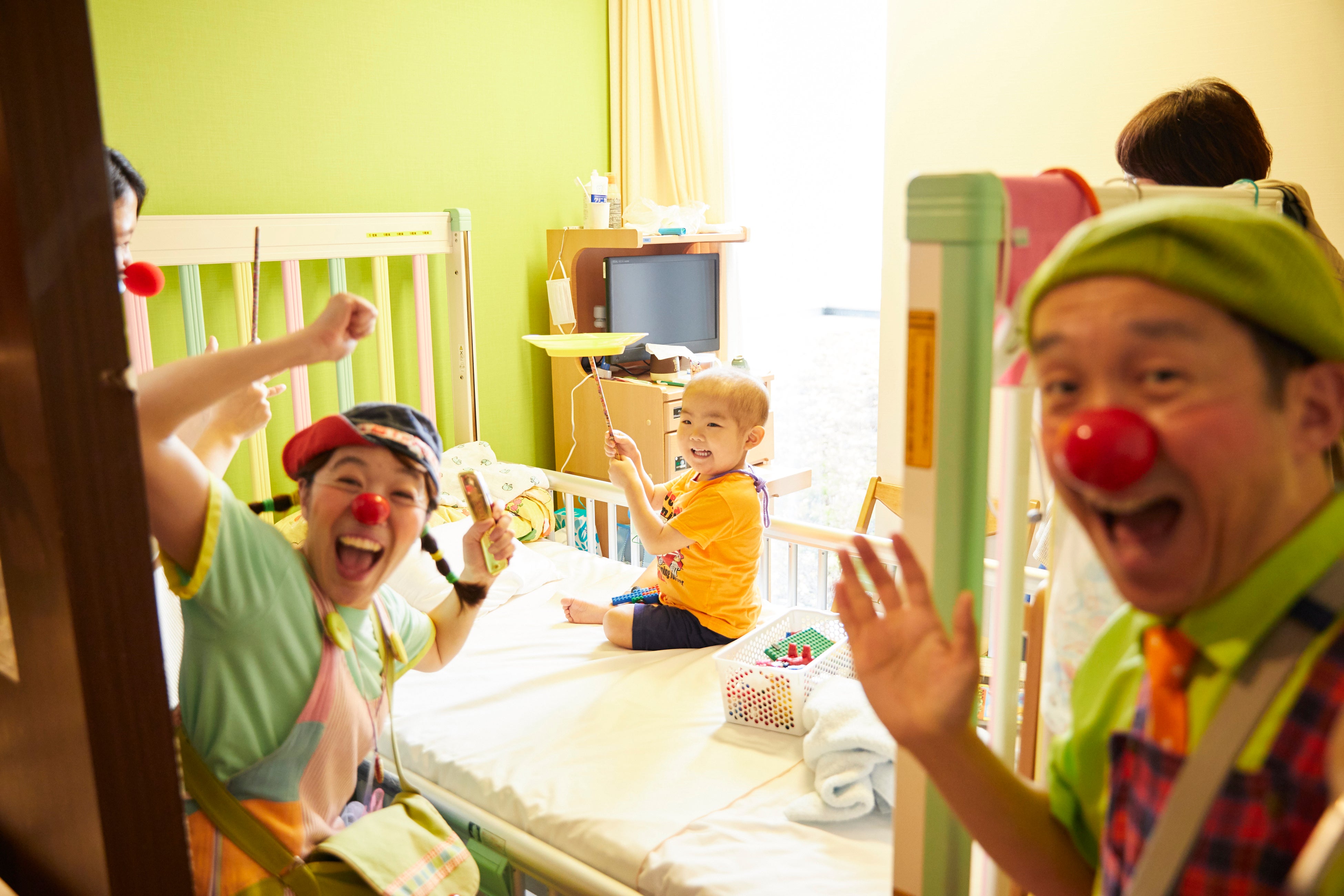 認定NPO法人 日本クリニクラウン協会は、小児病棟へ赤い鼻がトレードマークのクリニクラウン(臨床道化師)を定期的に派遣し、入院中のこどもがこどもらしく過ごせる「こども時間」を届けています。クリニクラウンならではの、遊びやコミュニケーションを通じて、こどもの成長や発達を支えるために2005年から活動しています。