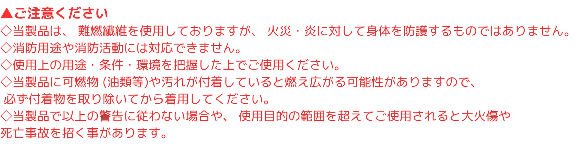 また他繊維の溶融滴下を防ぐ効果も発揮します。(生地仕様により効果は異なります。)