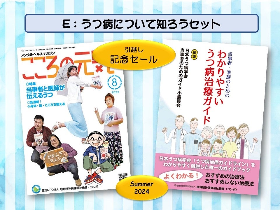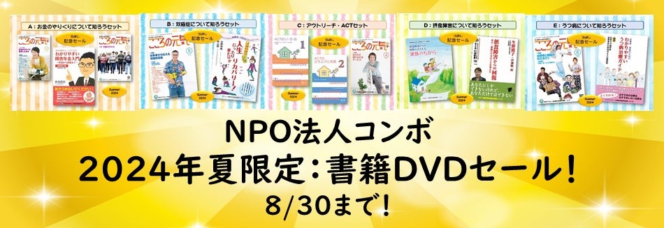 NPO法人コンボでは、この夏期間限定で書籍DVD等の割引セールを開催中!メンタルヘルスのサービスユーザーに関心の高いテーマごとに、A~Eの5セットをご用意いたしました。