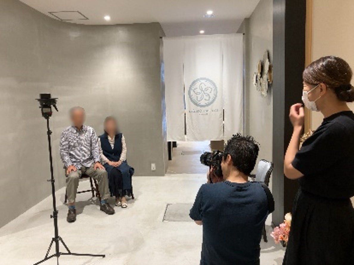 「アニバーサリーフォト」は、彩りステーションの会員様であれば無料でスタジオで記念写真を撮ることができ、アルバムと遺影写真を受け取ることができるというサービスです。なお、現在は予約が満員のため、新規予約は受け付けておりません。