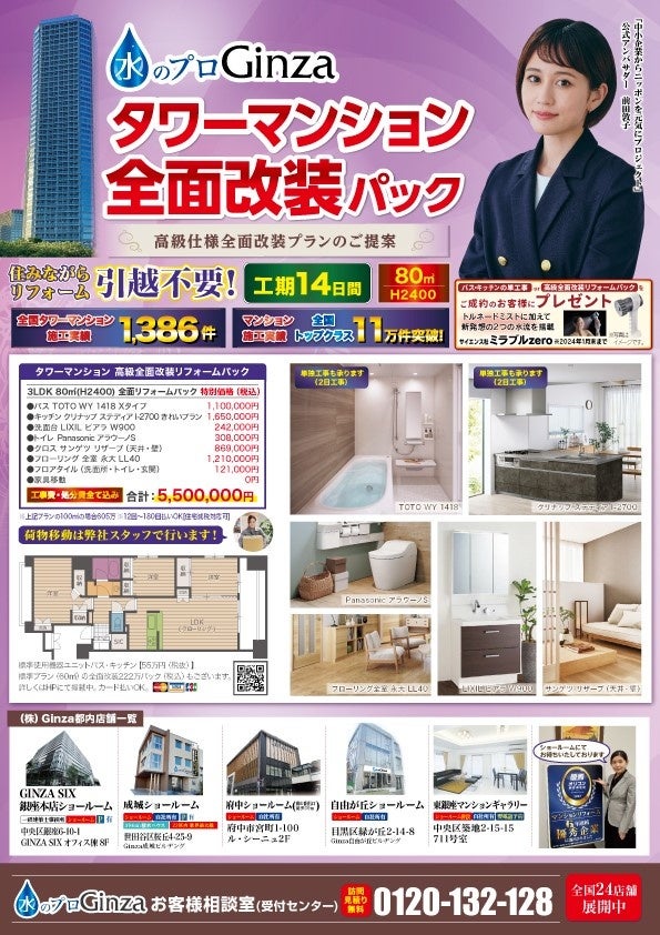 株式会社Ginza(本社:東京都中央区/代表取締役社長:池田馨)は、新たに【タワーマンション高級全面改装リフォームパック】をご提案致します。