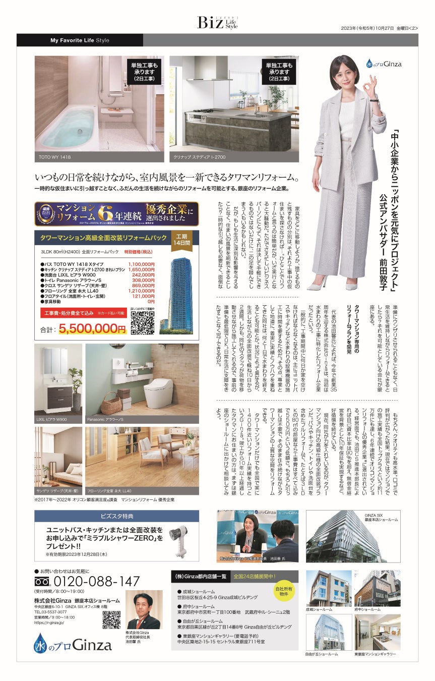 そしてこちらの全面改装パックは、日本経済新聞折込のライフスタイル情報誌「Biz Life Style(ビズスタ)」東京版10月号にも掲載されました。