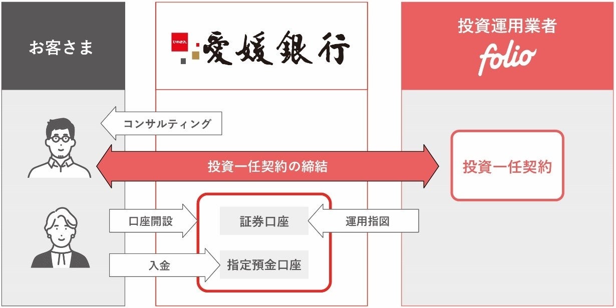 「ひめぎんラップ/ROBO PRO AIラップ」は、預金ではなく投資一任契約に基づくサービスのため、元本保証および利回り保証のいずれもなく、また、預金保険制度の対象ではありません。金融商品の取引においては、金利水準、株式相場、不動産相場、商品(コモディティ)相場等の変動による組入れ有価証券の値動き及び為替相場の変動等により損失が生じるおそれがあります。ご投資の際にかかる手数料等およびリスクの詳細については、愛媛銀行ウェブサイトの当該金融商品のページ、契約締結前交付書面、投資対象ファンドの交付目論見書等の内容を十分にご確認ください。