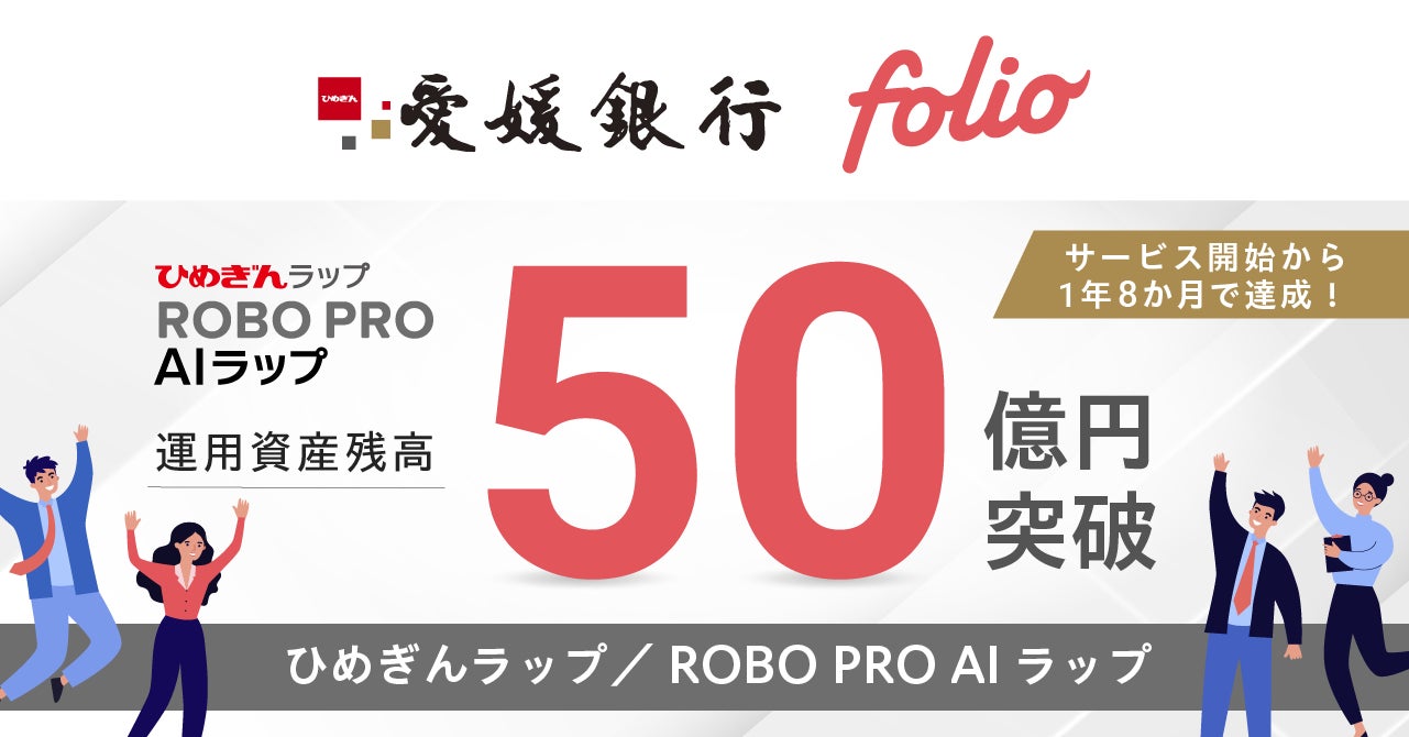 SBIグループで革新的な金融ソリューションを提供する株式会社FOLIOホールディングスの子会社である株式会社FOLIO(本社:東京都千代田区、代表取締役:四元 盛文、以下:FOLIO)は、株式会社愛媛銀行(本社:愛媛県松山市、代表取締役頭取:西川 義教、以下:愛媛銀行)のお客さま向けに提供している「ひめぎんラップ/ROBO PRO AIラップ(ロボプロ エーアイ ラップ)」の運用資産残高が2024年12月28日時点で50億円を突破したことをお知らせいたします。