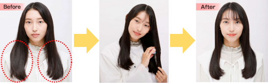 「クシでとかす」・「毛束を挟む」・「カットする」の3ステップで、