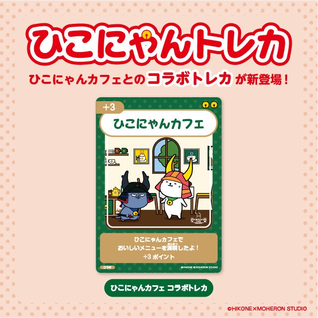 現在ひこにゃんカフェで開催中の「ひこにゃんの祝!1周年イベント」にて、2026年4月14日(火)~5月31日(日)までの期間、シールラリー【第3弾】の引き換えアイテムとして、ひこにゃんカフェとのコラボトレカ「ひこにゃんカフェ」を配布いたします。