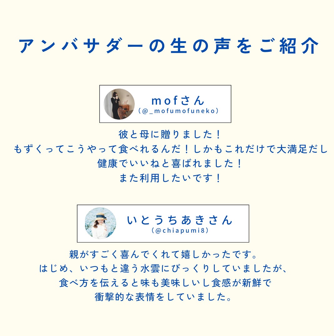 「スーパーで買うもずくと比べ物にならないくらい美味しかったです!」とのポジティブなお声もいただき、大変嬉しく思っています。