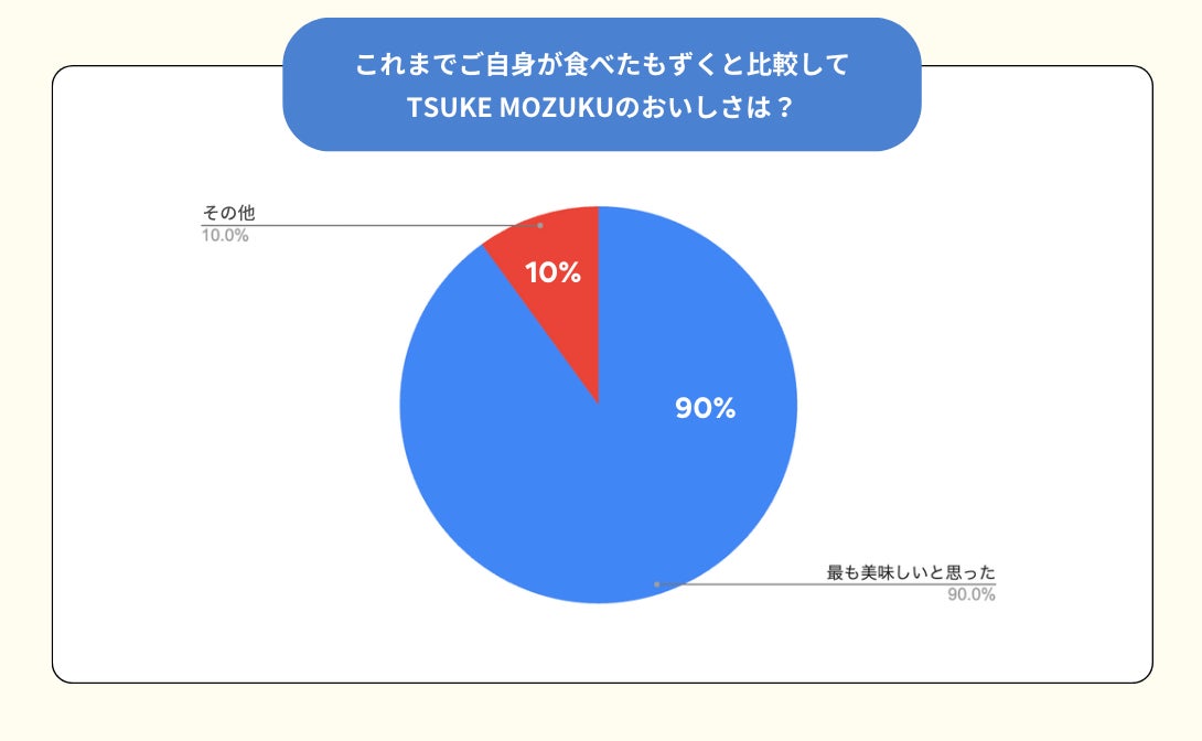 アンケートでは、「これまで食べたもずくと比較してTSUKE MOZUKUのおいしさは?」という質問に対し、アンバサダーからは「最も美味しいと思った」といった高評価を得ました。