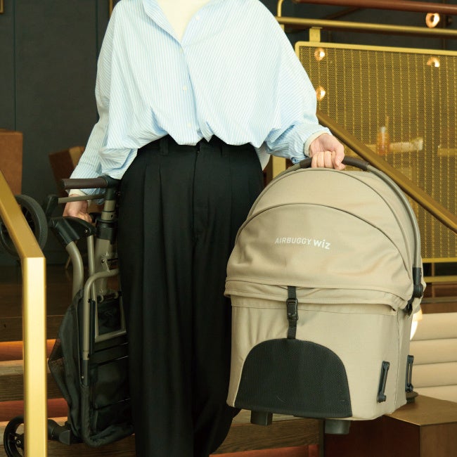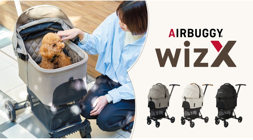 『WIZ X(ウィズエックス)』は、ペットカートをもっと日常的に気軽に使ってほしいとの思いからエアバギーのエントリーモデルとして2021年に発売した『WIZ(ウィズ)』を大幅にブラッシュアップした後継の新型モデルです。