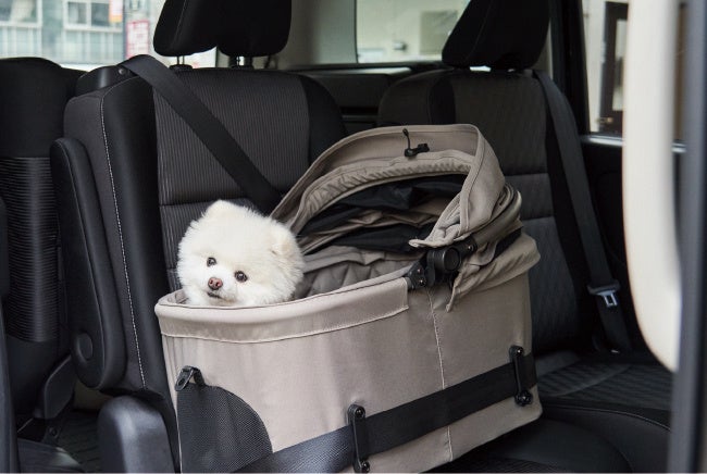 前からでも後ろからでも大きく開く快適ルーフは新しくマグネットバックルを採用しより開閉しやすくなりました。外からは見えにくく内側からは視認性の高いピーカブーウィンドウや、コットの底面にはクッション性のある専用マットを標準装備。ヒトにもペットにも嬉しい機能が充実しています。