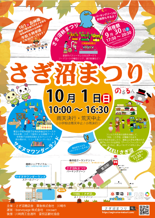 川崎市、東急、さぎ沼商店会の3者共催の鷺沼駅周辺エリアの周遊型イベント「さぎ沼まつり」を開催します