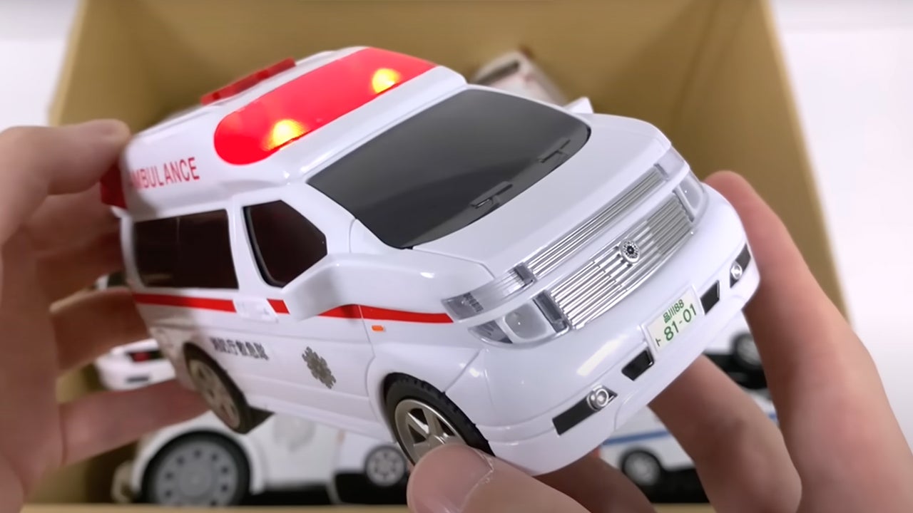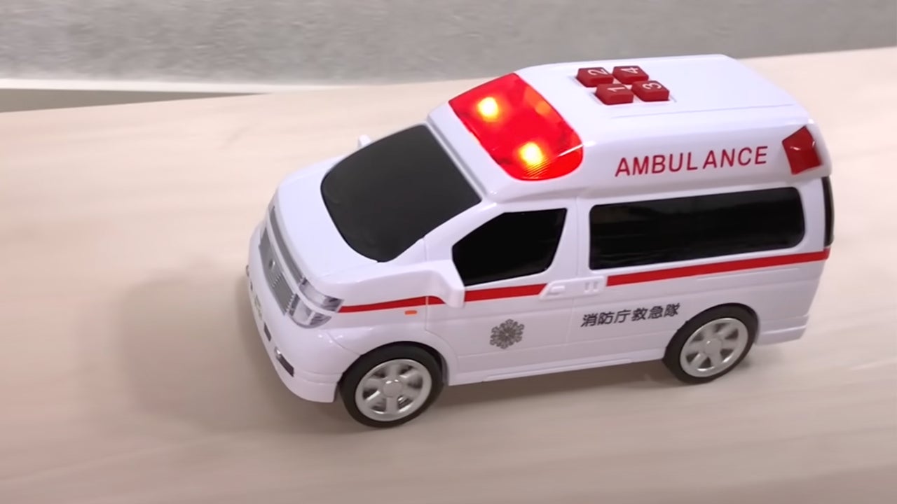 救急車のミニカーが緊急走行!チェックして坂道を走る☆ An ambulance minicar runs urgently! Check and run on the slope!