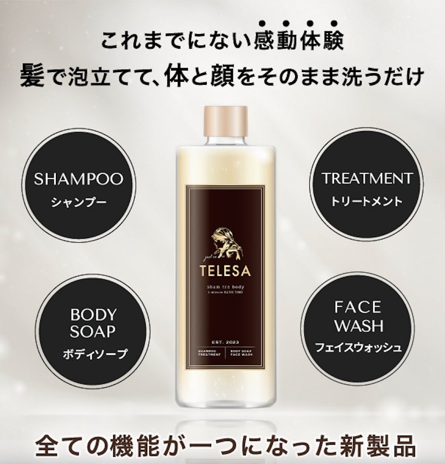 イノベーション×ユニセックスをコンセプトに、忙しいビジネスマン、こだわりの上質な生活を目指す方などへ、これまでオールインワンヘア&ボディケアでは考えられなかった、「シャンプー・トリートメント・ボディソープ・洗顔」の4つの機能を特別な処方で一つにした革新的なアイテムとして誕生させた。