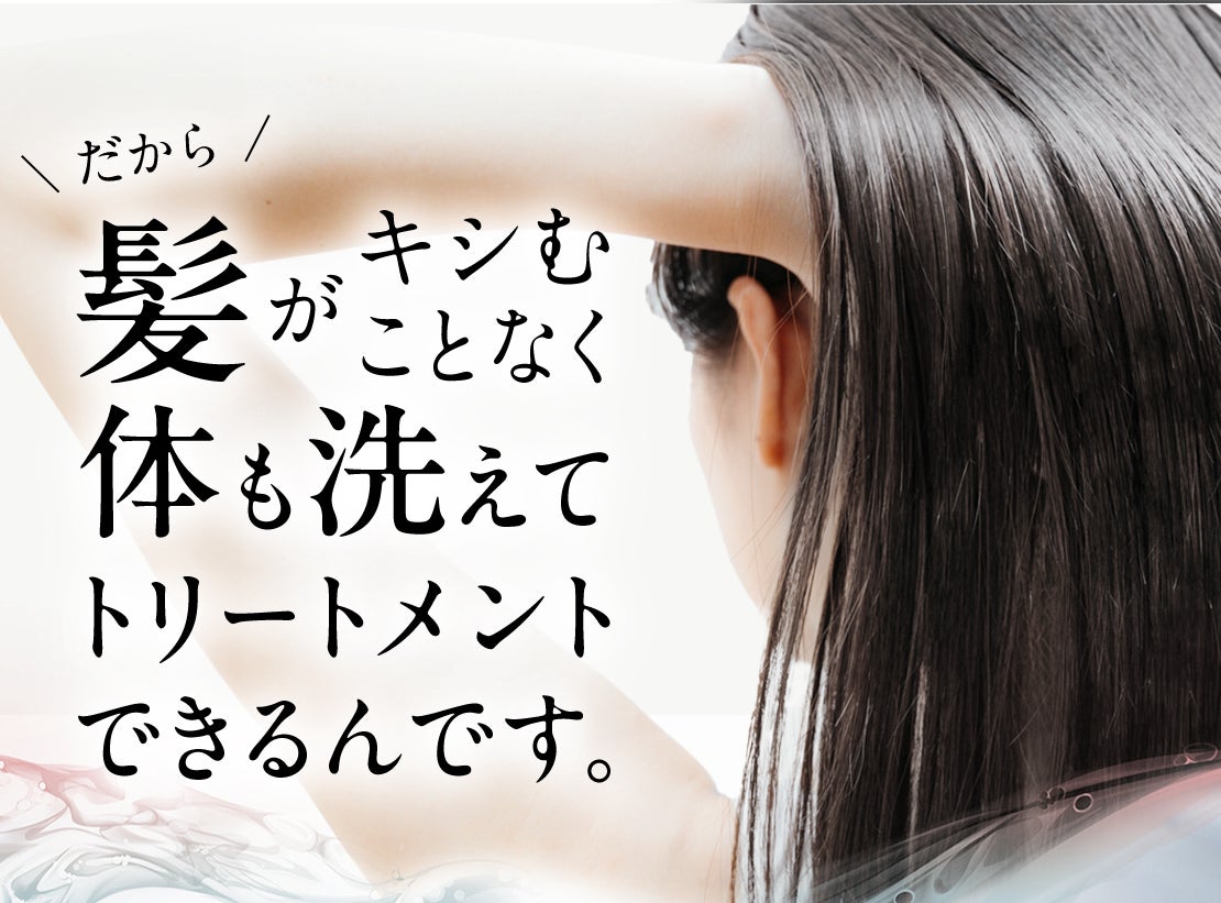 「洗浄と保湿」を一度に行える新設計で、1回の使用でボディクリームが不要なほどに全身が潤う。