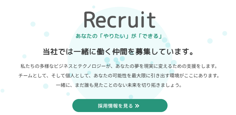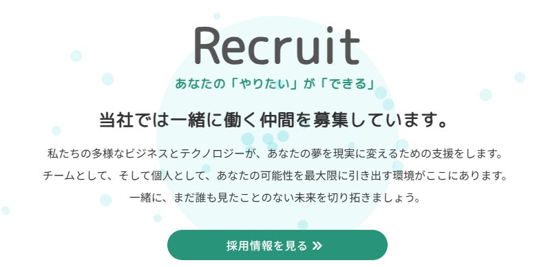 当社では、異なるバックグラウンドを持つ社員たちが、それぞれの個性を活かしながら、共に成長しています。求職者に向けて、社員インタビューの生の声を豊富に掲載することで、より当社にマッチした人材の獲得を目指しています。